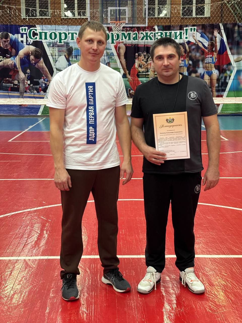 Координатор Абатского районного отделения ЛДПР, депутат Дмитрий Викулов поздравил с профессиональным праздником и вручил Благодарность от областного депутата тренеру спортивной школы «Импульс» Александру Чикишеву