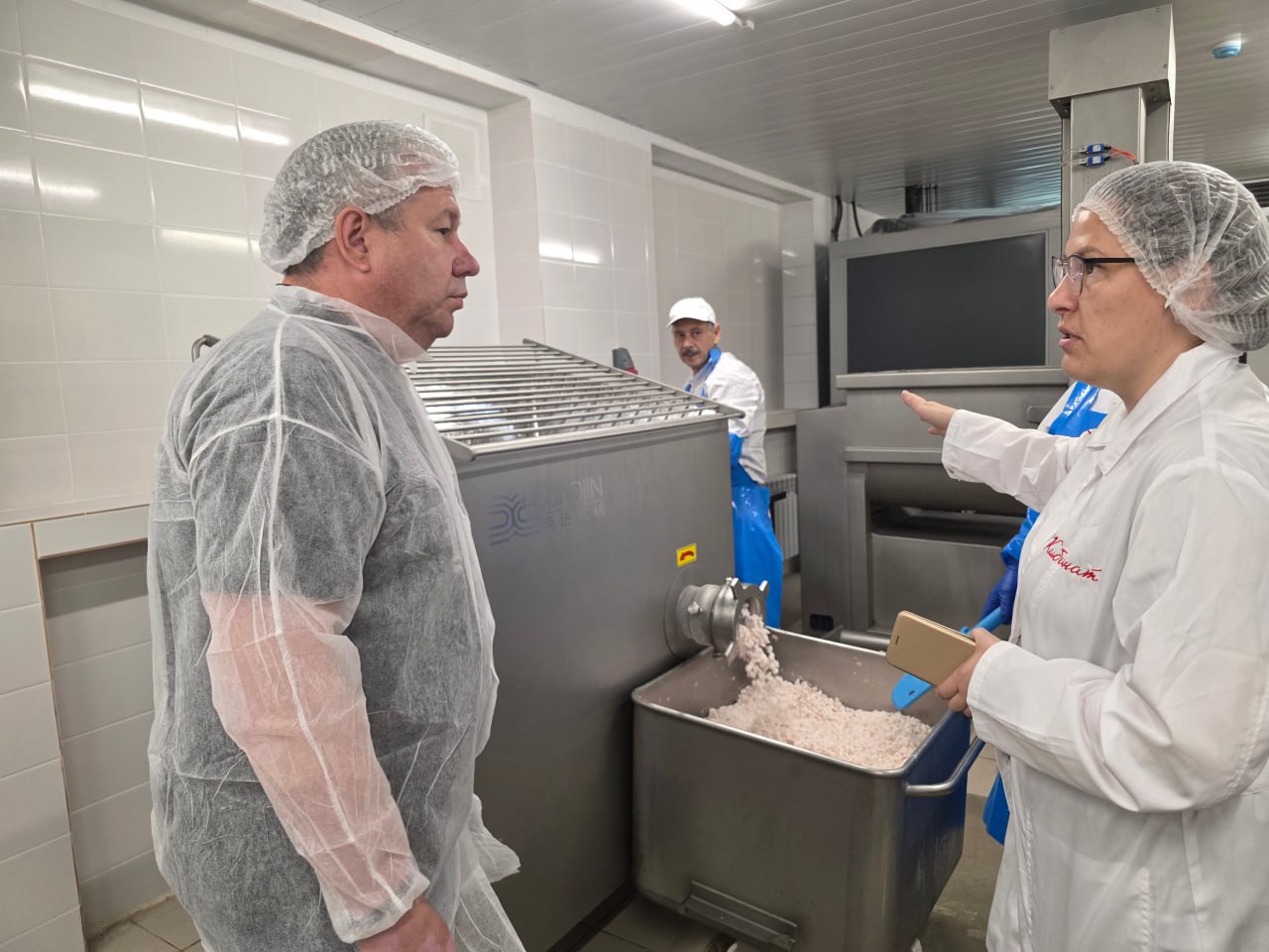 Дмитрий Ошурков отметил ответственное отношение сотрудников к санитарно-эпидемиологическим требованиям на комбинате. В цехе организован поэтапный технологический процесс. Цех оснащен современным оборудованием, процесс автоматизирован.