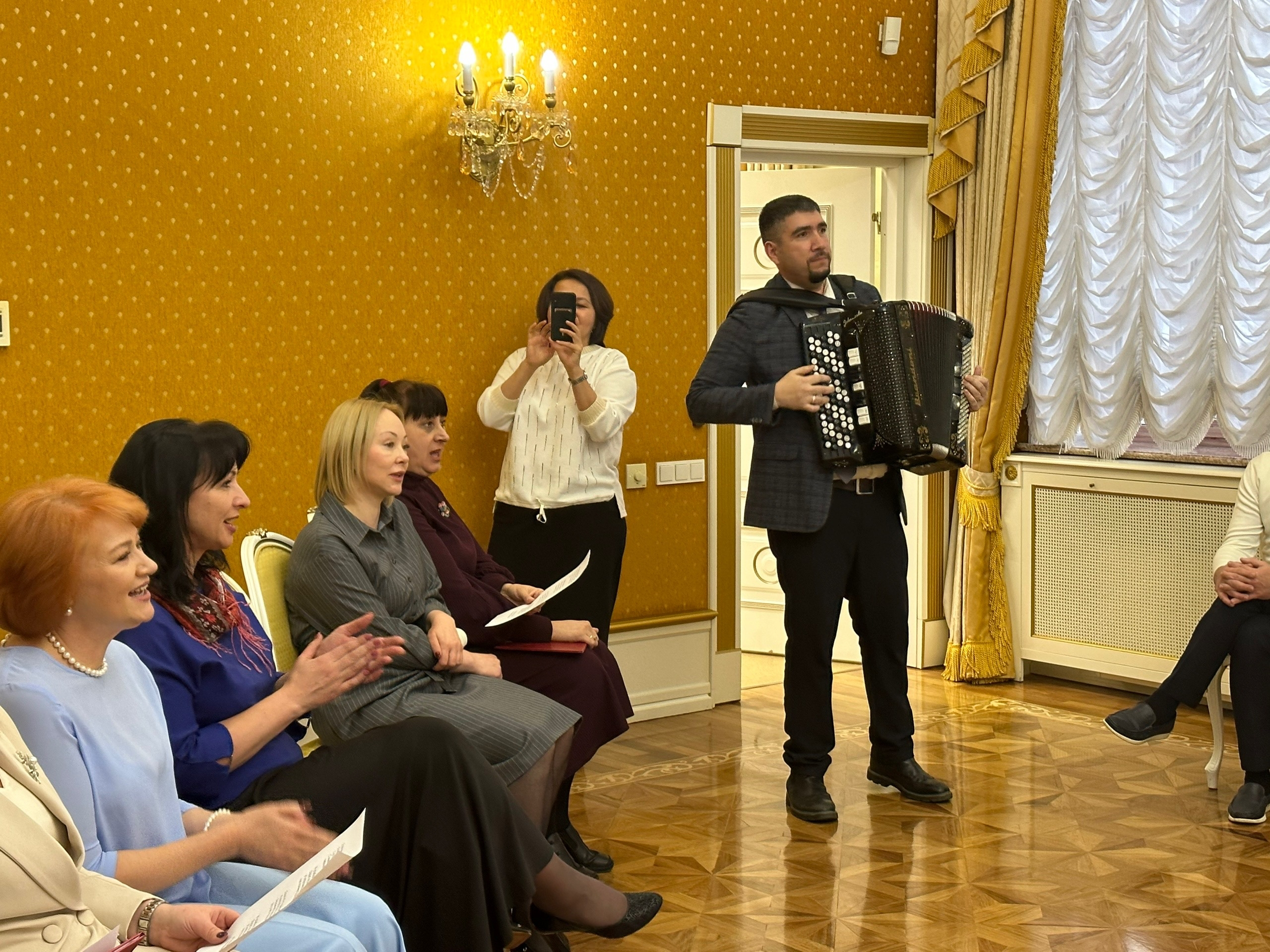Депутат ЛДПР подчеркнул, что работники ЗАГСа несут важную, значимую функцию сопровождения самых важных дат и событий в жизни каждого человека – от появления на свет, свадеб и до прощания с самыми близкими людьми. И в честь праздника сыграл на баяне, подарив всем прекрасное настроение.