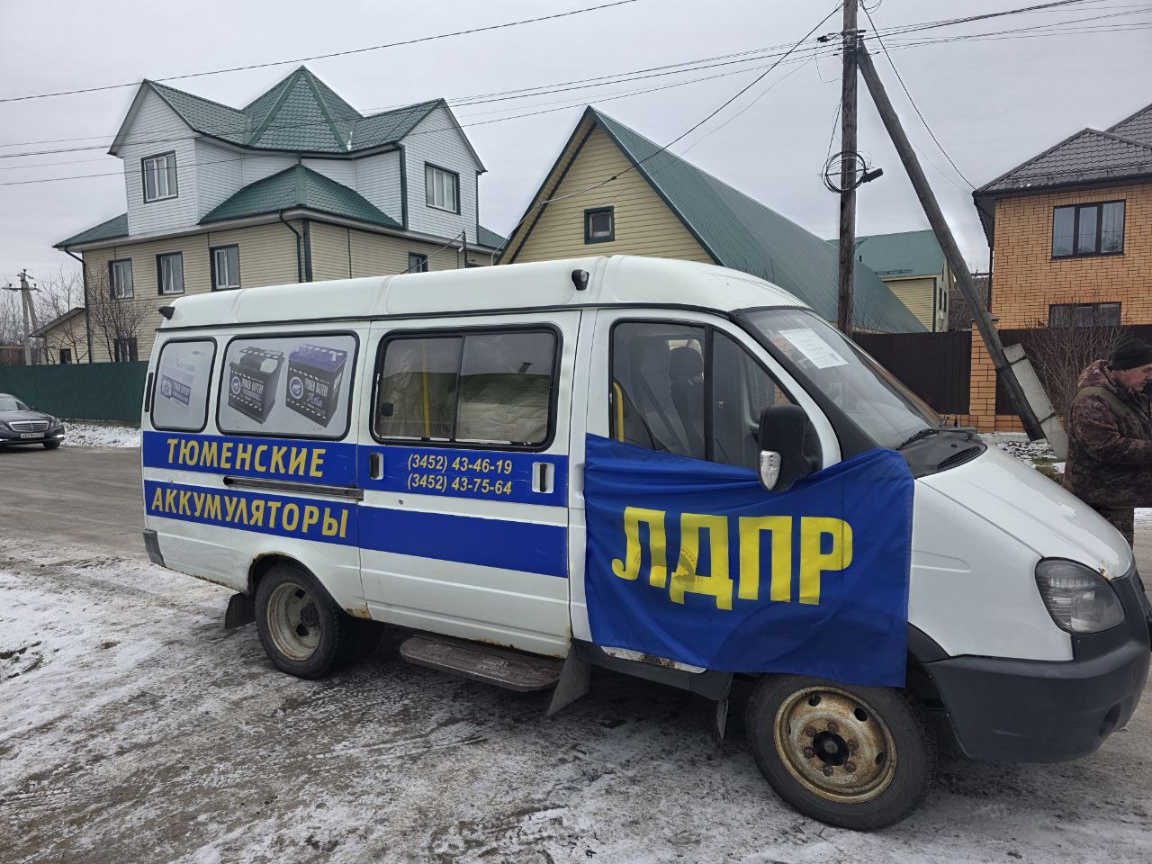 Руководитель фракции ЛДПР Тюменской городской Думы Дмитрий Ошурков, тюменские партийцы совместно с сотрудниками Тюменского аккумуляторного завода подготовили и отправили автомобиль в зону СВО